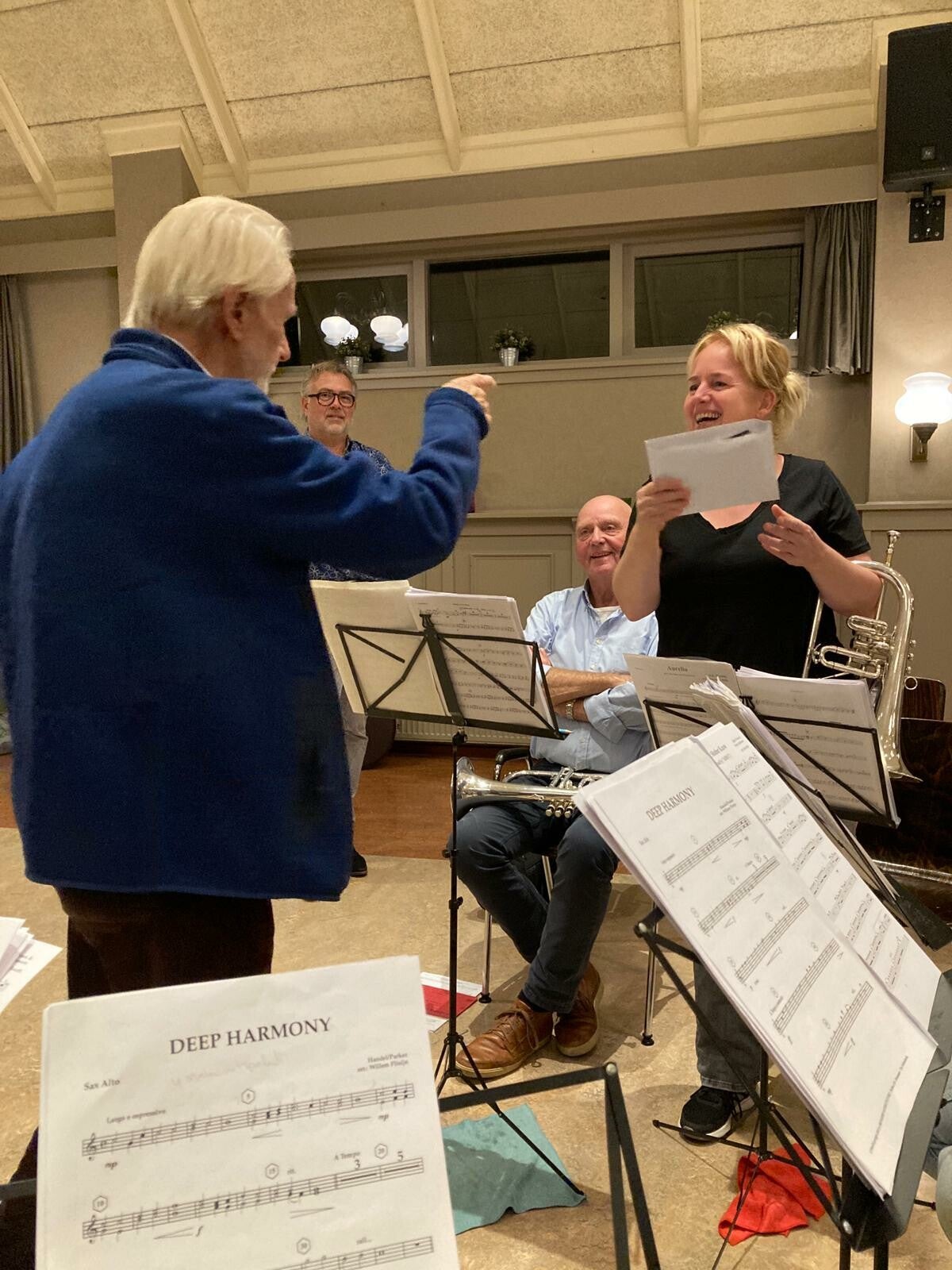Oud dirigent Henk Tromp kwam langs op de repetitie en overhandigde ons een mooi nieuw muziekstuk!